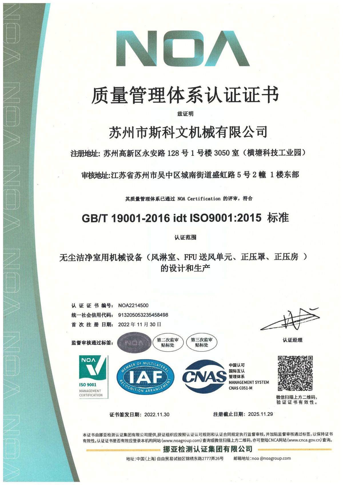 ISO9001質量管理體系認證證書